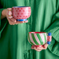Apportez une note de douceur et d’originalité à vos pauses avec la tasse Caramella Sucrée. Conçue en grès, elle se distingue par son joli émail réactif aux nuances rosées et bleutées, sublimé de détails peints à la main. Son design joyeux et artisanal en fait un objet aussi décoratif que pratique, parfait pour vos boissons chaudes au quotidien ou pour égayer vos moments conviviaux.