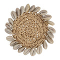 Matières naturelles et authentiques : Confectionné en jonc de mer tressé et agrémenté de coquillages, ce dessous de verre met à l’honneur l’artisanat et la nature. Chaque pièce est unique.
