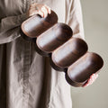 Sa teinte brune foncée et sa finition soignée (vernis protecteur et scellant) mettent en valeur les veinures naturelles du bois, faisant de chaque pièce une création unique. Il s’adapte aussi bien aux repas quotidiens qu’aux occasions festives.