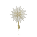 Conçue en papier délicatement façonné et montée sur une spirale en métal doré, cette étoile allie finesse et praticité. Facile à fixer au sommet de votre arbre, elle devient la pièce maîtresse de votre décoration de Noël.