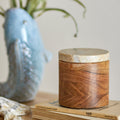 Le pot LISANNE avec couvercle de Creative Collection allie design naturel et fonctionnalité élégante. Fabriqué en bois d’acacia certifié FSC® 100%, il est surmonté d’un couvercle en marbre véritable, formant une pièce unique aux motifs naturels et contrastés. Chaque pot présente des variations de veinures et de teintes, caractéristiques des matériaux bruts.