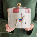 Le pot Merry-go-round de Bloomingville est une pièce festive et élégante qui séduit par son motif carrousel peint à la main et ses détails dorés raffinés. Son couvercle est équipé d’un joint en silicone hermétique, idéal pour conserver biscuits, friandises ou autres douceurs de Noël. Chaque pièce étant peinte à la main, elle se distingue par son caractère unique et son charme artisanal.