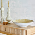Conçu en grès de haute qualité, il séduit par sa glaçure réactive aux reflets dorés, qui rend chaque pièce absolument unique .
