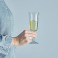 Le verre à champagne Asha de Bloomingville allie élégance et durabilité 🌿. Soufflé à la bouche en verre 100 % recyclé, il arbore une surface martelée discrète qui capte la lumière et apporte une touche vibrante à votre table.